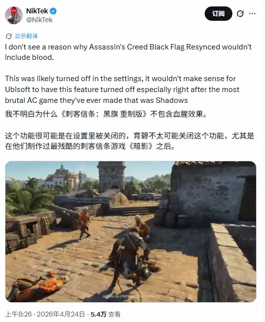 那么,话题就回到了玩家这里。为什么育碧会选择在首批如此重磅的实机演示中,主动禁用这一能显著提升战斗沉浸感的效果呢?是为了确保宣传素材能无阻碍地通过所有平台的审核,还是出于其他策略性的考虑?这背后的决策逻辑,确实值得玩味。