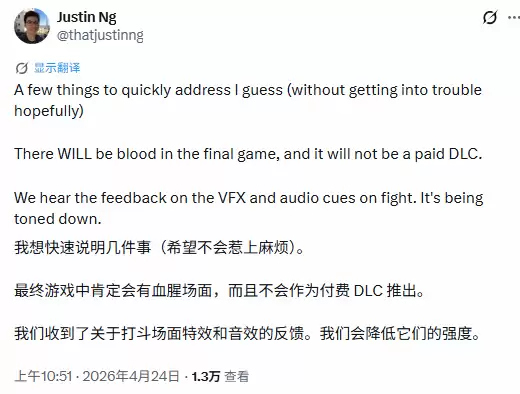 这一点似乎也得到了官方的侧面印证。制作团队已经明确声明:在最终发售的完整版游戏中,血腥效果绝对会包含其中。