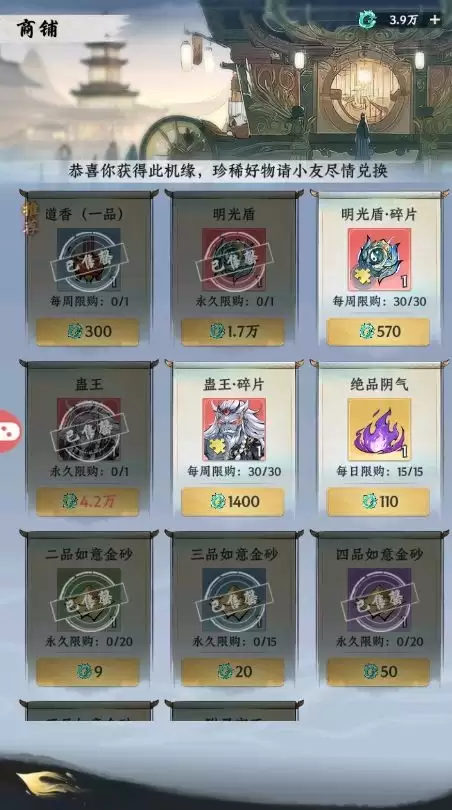 对于前期发展,优先兑换“一品悟道香”、“内经”以及各类功法,能直接且有效地推动修为增长。至于法宝,可以稍晚一些再考虑。基本上,商铺里的物品都有其用武之地,根据自身当前最迫切的需求来选择即可。