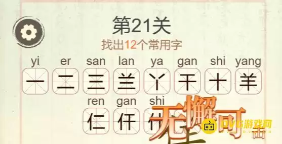 卡在第21关了?别着急,这一关考察的是汉字拆解能力,目标是从“佯”字里找出12个常用字。听起来有点挑战,但只要掌握几个关键思路,通关其实并不难。下面这份攻略,就带你一步步拆解。
