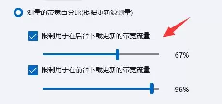 第七步,紧接着,修改下方“限制用于在后台上传更新的带宽流量”的百分比。同样,建议将这个百分比也设置得大一些。完成这两步设置后,后台更新对网络资源的抢占就会大幅减少,从而有效解决Win11下载速度慢的问题。