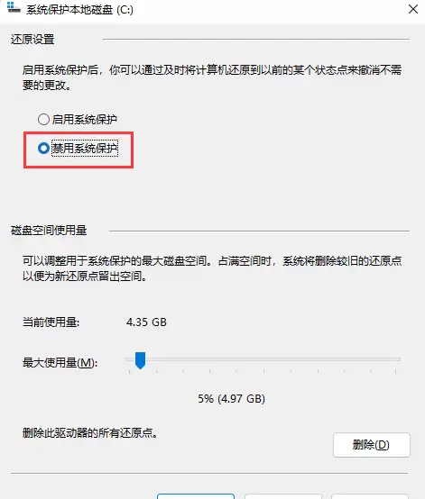Win11系统保护怎么关闭