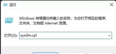 2. 这时会弹出一个“运行”对话框。在输入框里,键入命令【sysdm.cpl】,然后按下回车键或点击【确定】。