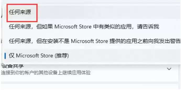 最后,也是关键的一步:点击那个下拉菜单,将选项从默认的“仅Microsoft Store”之类的限制项,更改为“任何来源”。这样一来,系统就不会再阻止你从其他渠道下载和安装应用了。当然,选择“任何来源”也意味着需要你自己对软件来源的安全性多加甄别。