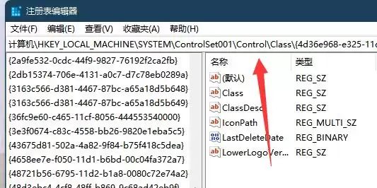 计算机\HKEY_LOCAL_MACHINE\SYSTEM\ControlSet001\Control\Class\{4d36e968-e325-11ce-bfc1-08002be10318}