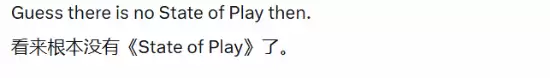 “看来根本没有State of Play了,生活是一片悲伤的海洋”——这类充满自嘲意味的感叹,恰恰成为了当前玩家群体心情的真实反映。从社群中的各种反馈来看,在期待落空之后,以幽默的方式进行调侃已成为一种普遍的共鸣与情绪释放。