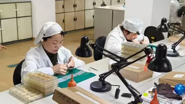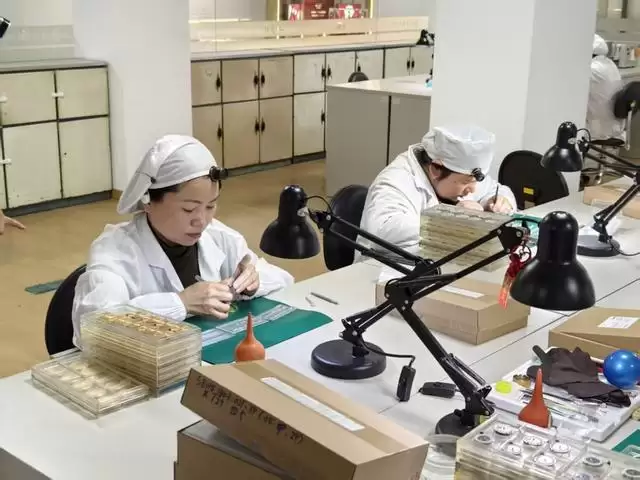 上海表工人正在装配手表。杨爱博 摄