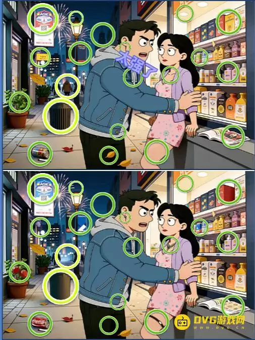 其次,这一关的“不同”类型比较特别。除了常见的图案、颜色差异外,还有一种情况需要格外留意:有的物品在一张图里出现,在另一张图里却完全消失了。这种“有和无”的对比,往往是容易被忽略的盲点。