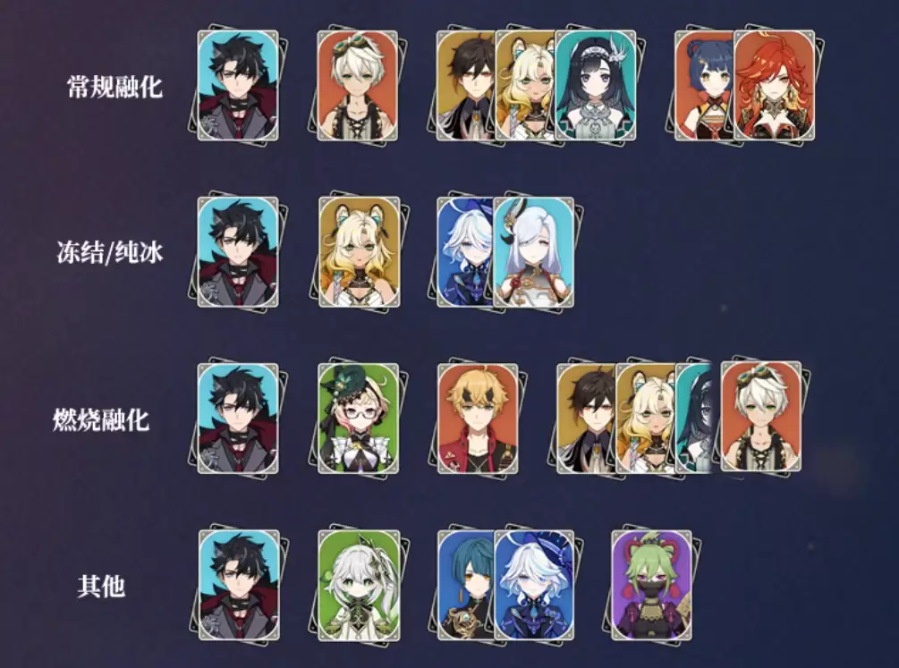 你也可以将他融入一些反应变种队,比如搭配纳西妲、托马、久岐忍等角色,尝试“冻结绽放”或“燃烧融化”等玩法,拓展配队多样性。