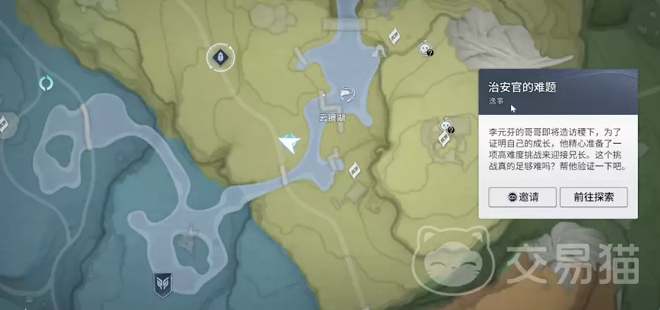 接下来说说任务本身。“治安官的难题”需要找到NPC李元芳接取,前提是你已经完成了他关联的“逸事任务”系列。接取地点位于云镜湖的传送锚点附近,从传送点出来,径直向西走大约80米,就能看到李元芳的身影,上前对话即可开启任务。