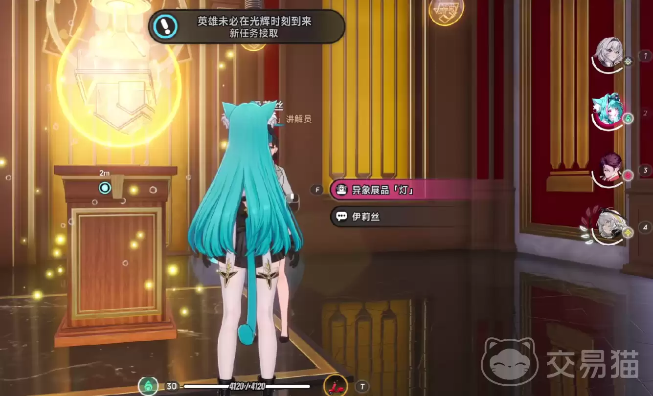 一切始于新赫兰德区的钨丝展厅。进入场馆后,别急着四处逛,留意一层中央讲台附近,你会发现NPC“金苹果场馆讲解员伊莉丝”。上前与她对话,便能接取到名为“英雄未必在光辉时刻到来”的任务起点。