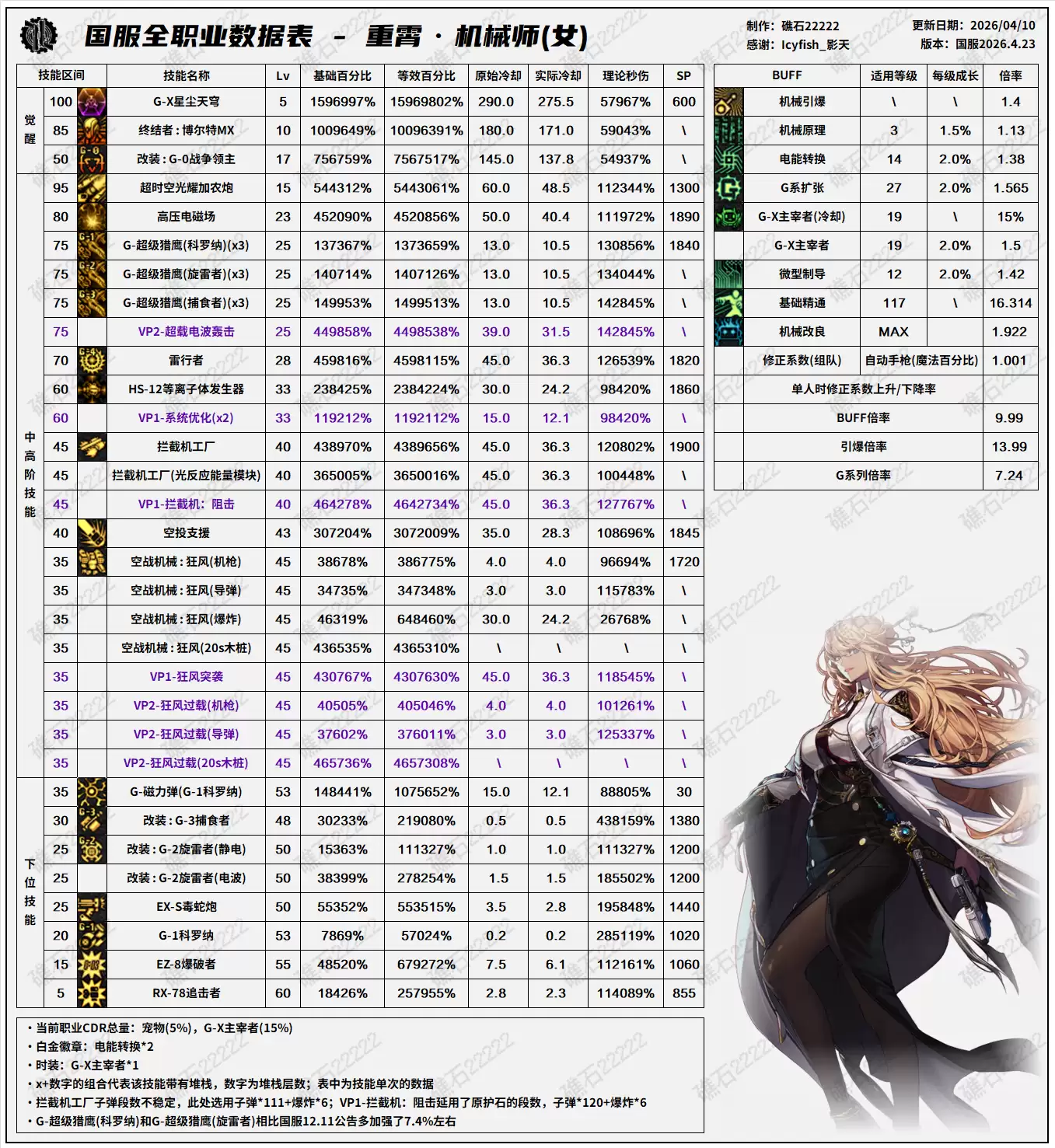 DNF千海天版本女机械技能数据一览