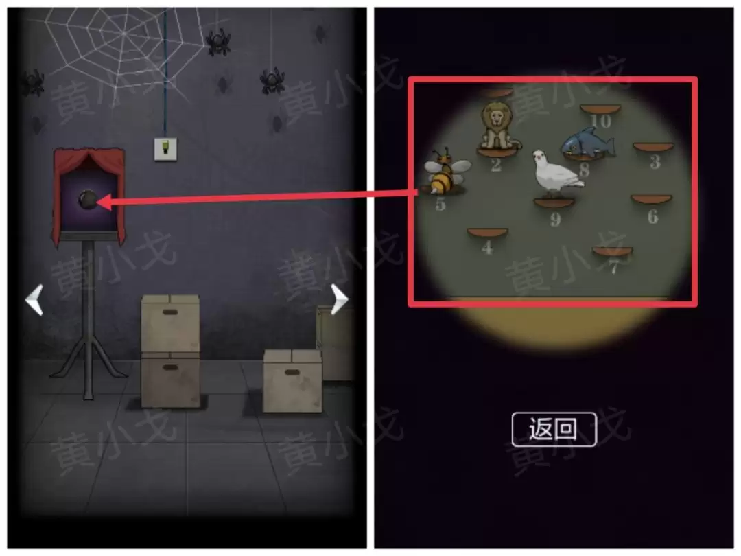 柜子里还有个带机关的盒子。还记得相机场景墙上的蜘蛛位置吗?根据那个位置来调整这个盒子上的机关。