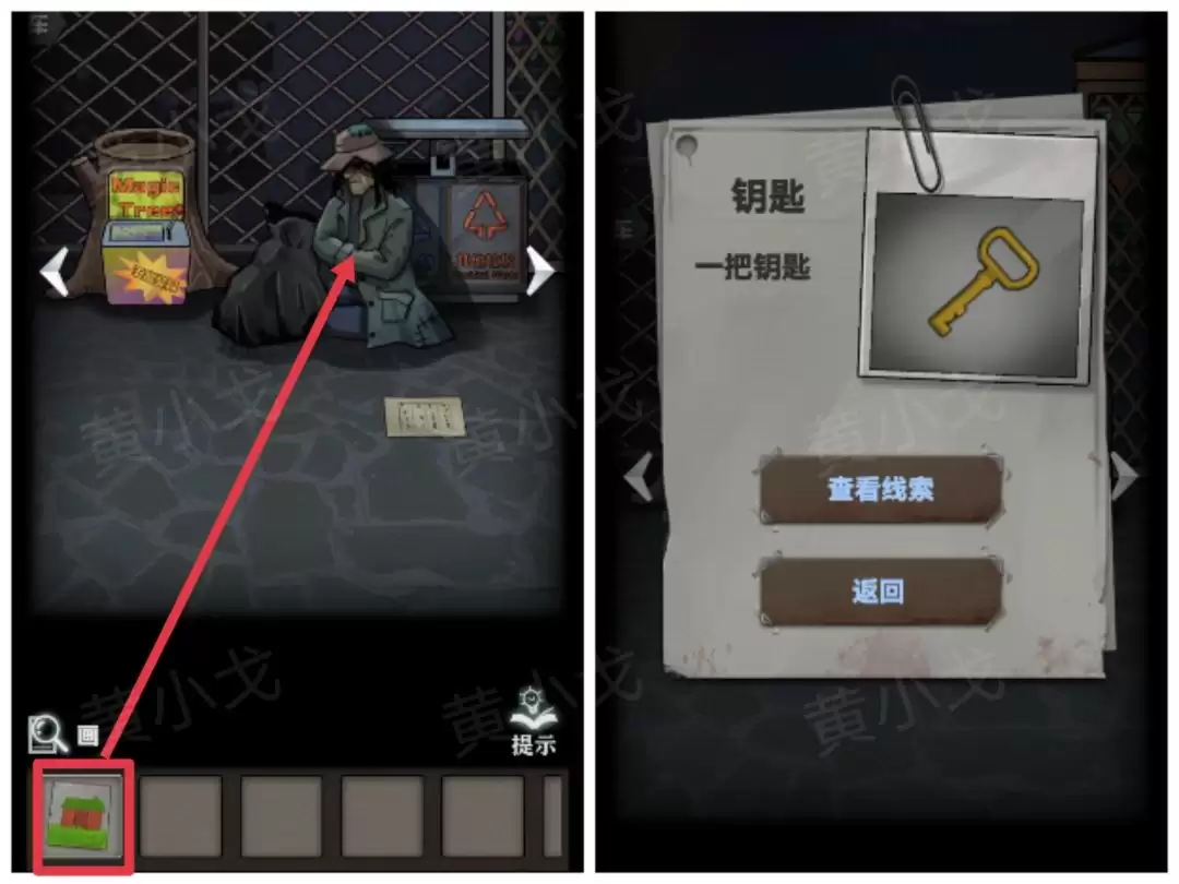 拿着这幅【画】去找外面的流浪汉,他会用一把【钥匙】和你交换。