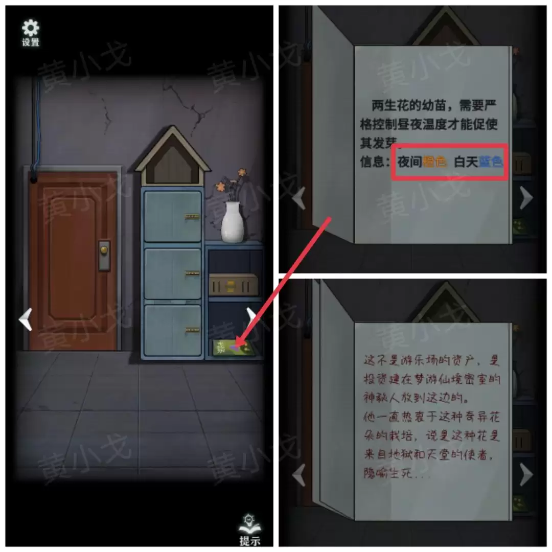 首先,把目光投向窗户区域。地上有本不起眼的旅行手册,捡起来翻看,你会发现里面暗藏玄机——它记载了四种景象出现的顺序:海边、草原、花海、天空。这个顺序至关重要,务必记牢。