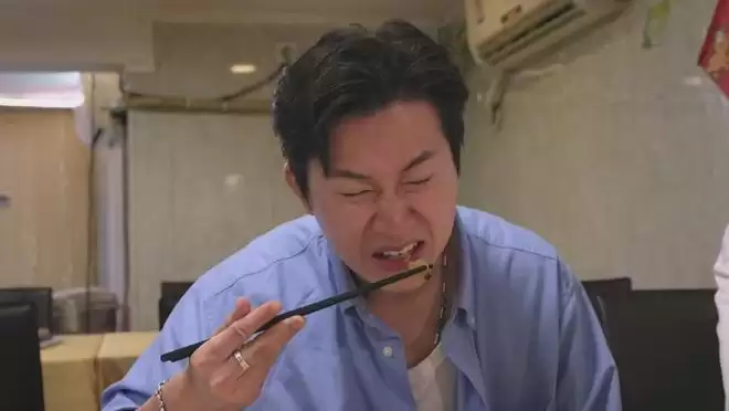 要說三間食店中最令人「難忘」的,非「全蟲蟲宴」莫屬。節目未正式開始,只是聽到「金龜子」、「桂花蟬」、「黑螞蟻」這些蟲名,GM已經嚇得面容扭曲。等到真正置身於被各式蟲餚「包圍」的現場,他那「嚇破膽表情包」可謂全面綻放——五官變形、作嘔狀頻現,還不斷爆出爛gag來緩解緊張,一句「凍檸茶有得少甜,呢度有冇得少蟲架?」讓身旁的江美儀笑到停不下來。