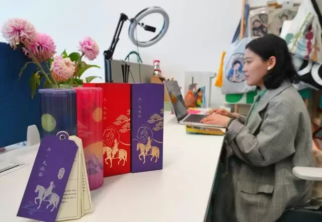 刘奕秀说,签筒外包装的主视觉取自《虢国夫人游春图》中女扮男装、策马踏青的形象,这是她自己找到的文化锚点。她还尝试在文创产品中植入NFC芯片,手机轻触即可播放AI生成的短视频。“AI生图、生视频,NFC做载体,实体产品做终端,整条链路就闭环了。”