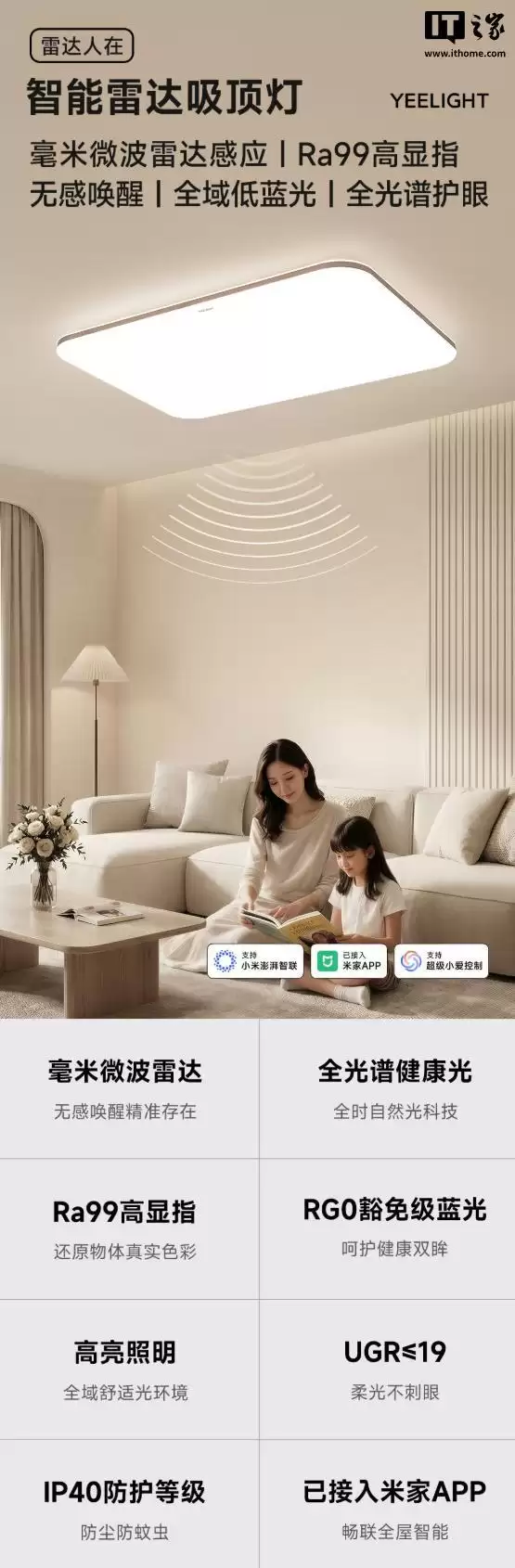 智能照明新体验:Yeelight雷达感应护眼吸顶灯开启众筹