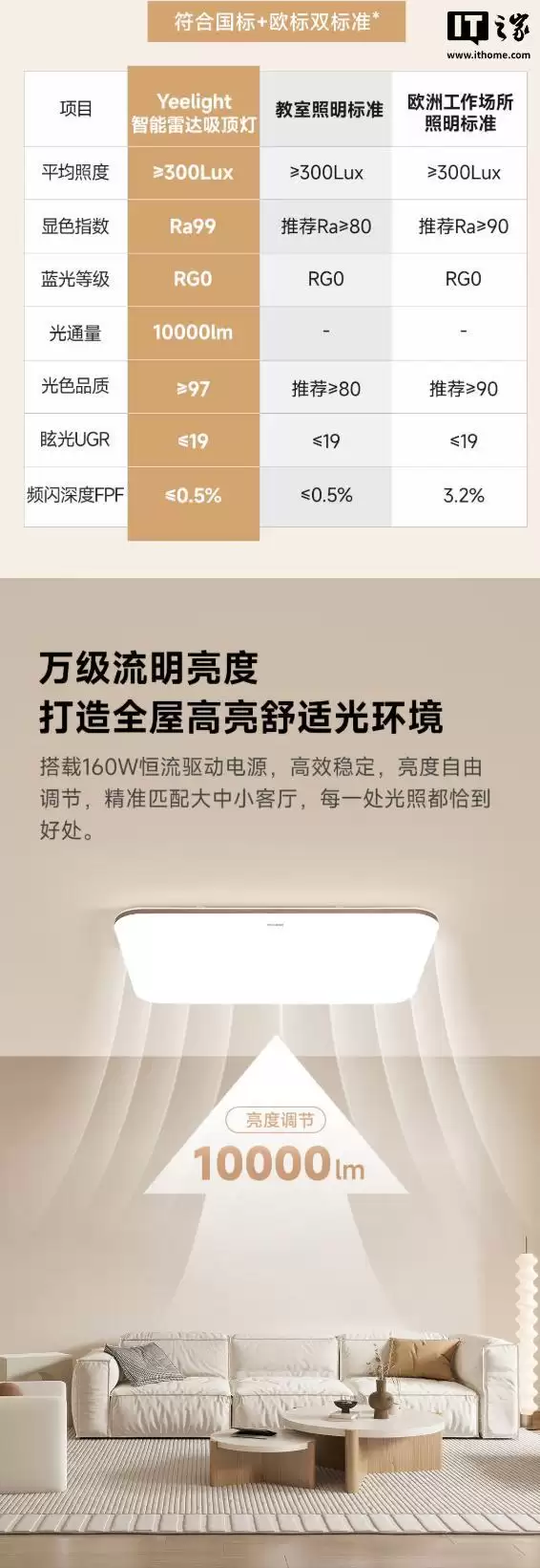 对于眼睛敏感的用户,另外两个特性也值得关注:一是采用了高效率无频闪光电处理器,宣称无可视频闪;二是搭载了160W恒流驱动电源,支持亮度的自由无级调节。从阅读到休闲,不同场景下的用光需求,都能得到满足。