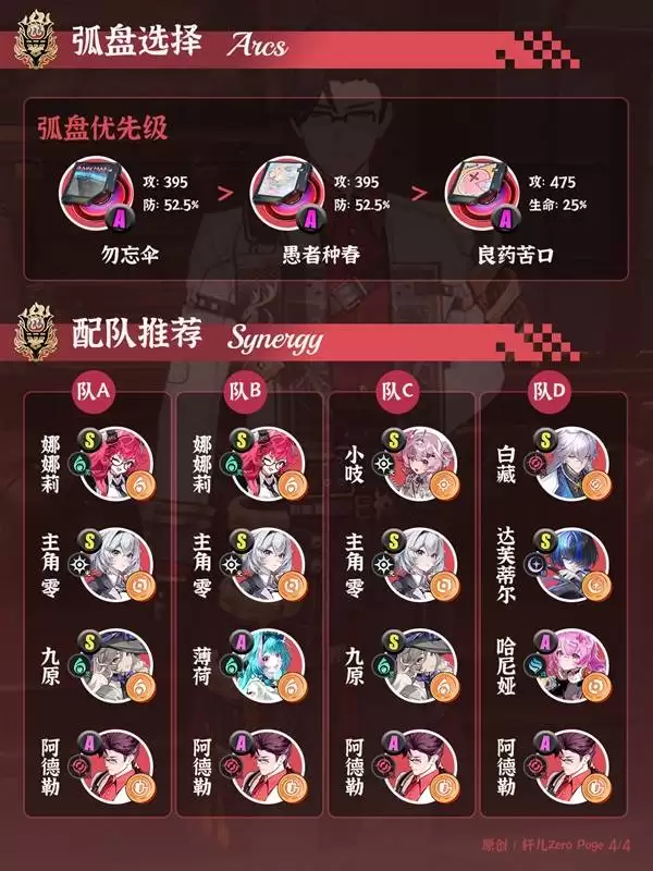 作为咒属性角色,阿德勒能够与灵、暗以及暗+魂属性的相邻角色触发环合。配队思路主要有两条:一是走灵属性路线,加入娜娜莉或薄荷为主C的队伍,充当生存位并触发“覆纹”增伤;二是走失谐队路线,与达芙帝尔或哈尼娅进行搭配,组成坚固的防守反击体系。