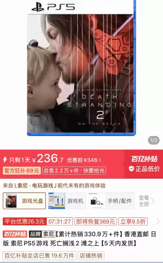 最近游戏圈有个挺有意思的事儿:小岛工作室开发、索尼互动娱乐发行的PS5大作《死亡搁浅 2:冥滩之上》,其实体版价格在部分渠道出现了明显下滑。在拼多多等平台上,经过店铺优惠叠加后,玩家甚至能以低至235元的价格入手。这个价格,对于一款发售不算太久的一线大作来说,确实有些出人意料。