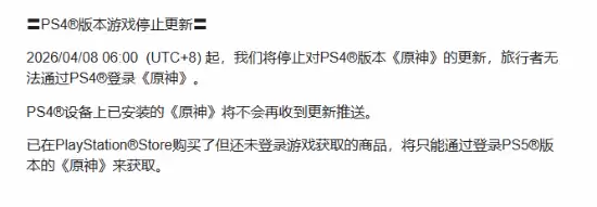 该来的终究还是来了。此前关于PS4版《原神》即将停服的消息,如今已正式确认。从即日起,PS4平台的玩家将无法再登录游戏,这意味着,一场持续数年的、属于PS4玩家的提瓦特大陆冒险,正式画上了句点。