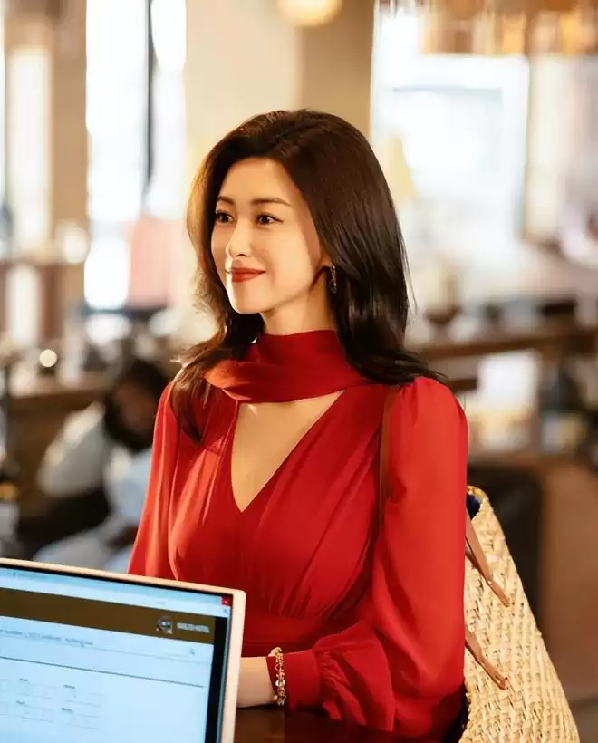 尽管朱珠在荧幕上亮相的频率不低,但每次在新剧中看到她的面容,依旧会感到惊艳。她饰演的许蜜语,初期人设是生活优渥、沉浸于美满婚姻幻象中的全职太太。首次登场,便是一场视觉盛宴:酒店窗外的阳光为她披上一层梦幻光晕,一袭火红长裙,宛如沙漠中傲然盛放的玫瑰,明艳不可方物。