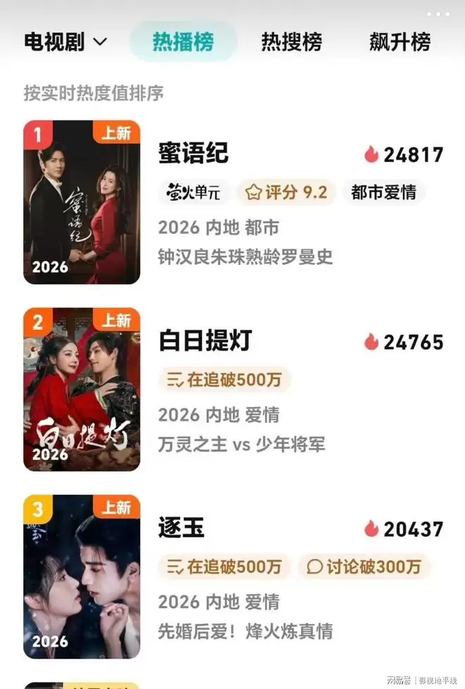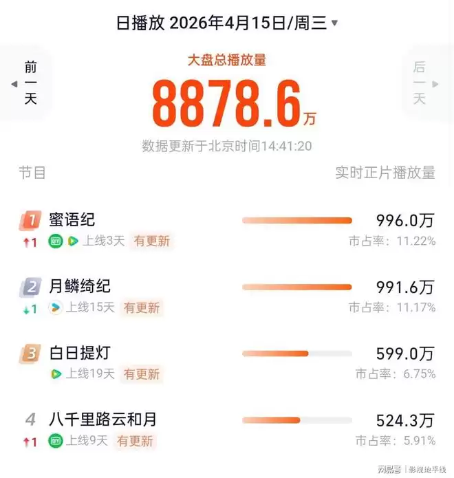 《蜜语纪》开播仅两天,平台热度指数便直线上升,迅速反超已播出数周的《白日提灯》。从第三方数据平台监测可见,其全网市场占有率与话题讨论度均对后者形成显著优势。