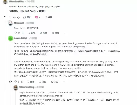 玩家们也理性地认识到,如今的光盘往往并非完整游戏,首日补丁与后续更新已成常态。但这并未削弱他们对实体介质的热爱。更深层的原因在于对“永久所有权”的坚持——有玩家表示,如果未来主机彻底取消光驱,他们将转向PC平台,通过GOG等提供无DRM游戏的分发渠道,以确保真正“拥有”游戏,规避数字版可能因下架或服务终止而无法游玩的潜在风险。