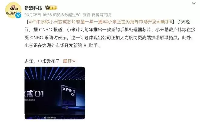 小米总裁卢伟冰在采访中对此予以确认,并表示这一计划体现了公司正加大力度向更高端的技术领域拓展的决心。每年更新SoC,这个节奏与苹果更新其A系列处理器的策略颇为相似。