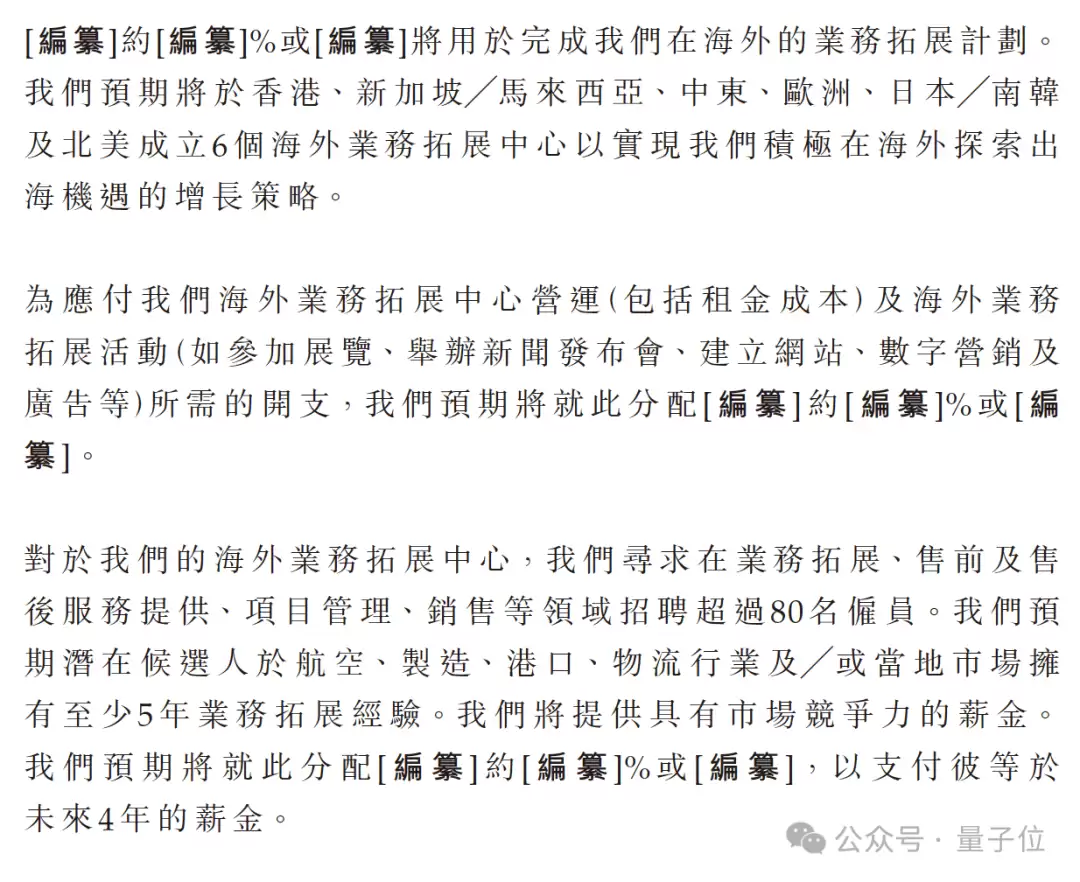 招股书列出了驭势计划建立的6个海外研发中心:香港、新加坡/马来西亚、中东、欧洲、日本/韩国、北美。同时,还将在同样这六个区域建立海外业务拓展中心,计划招募超过80名海外业务人员。