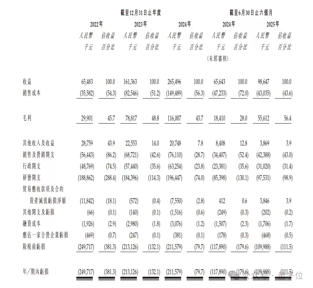 毛利率方面:2022年45.7%,2023年48.8%,2024年43.7%,2025年上半年达到56.4%,创下了往绩期内的最高水平。