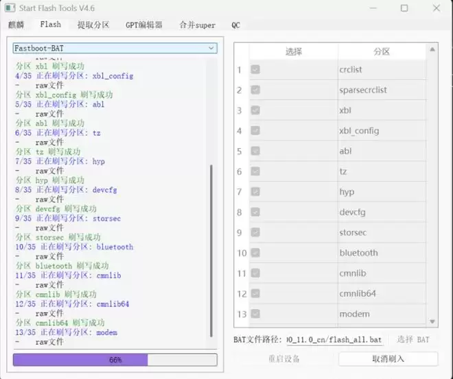 如果运气不好,手机会陷入循环fastboot模式。这时候教程会指导你去下载对应机型的线刷包,手动刷入gpt_both2.bin分区文件,再用刷机工具加载flash_all.bat完整刷机,等进度条跑完就能进系统。
