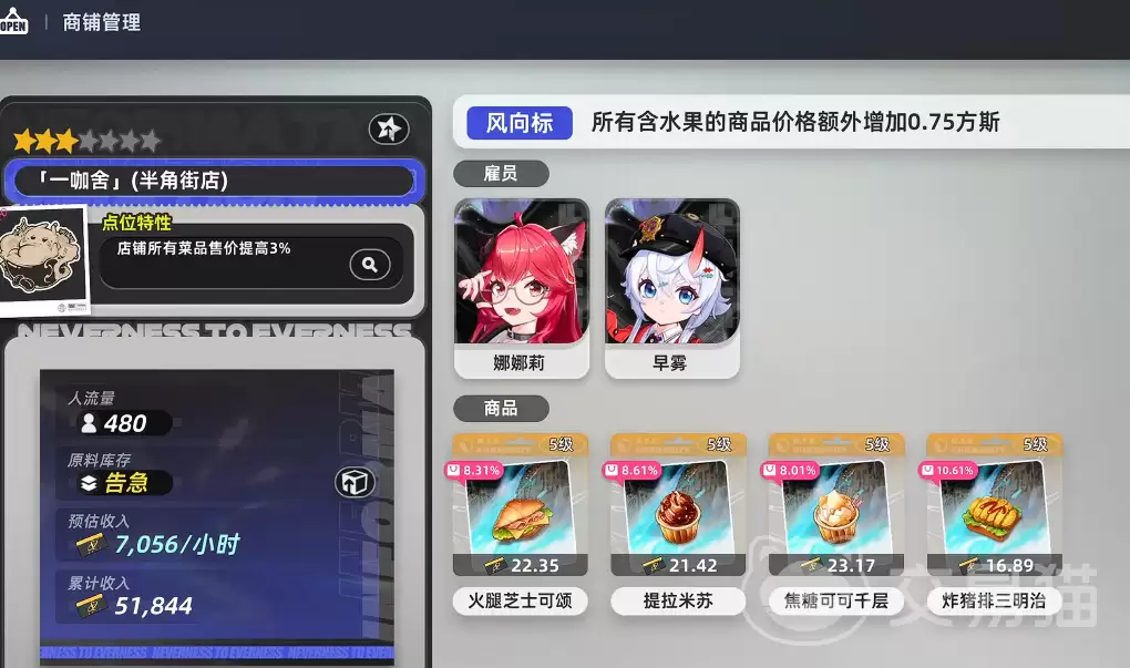 除了洗衣店,食品类商铺在《异环》的都市经济体系里,分量可能更重。为什么?因为“吃”是高频刚需。这类店铺的核心产出是可食用的料理,单次交易的收益本身就相当可观。但它的潜力远不止于此:游戏内嵌入了“食谱迭代”机制。通过持续研发新菜品,你能不断刷新顾客的偏好,从而带动复购率和店铺口碑双双上涨。这就形成了一个良性的增长闭环——生意不再是静态的,而是越做越活。