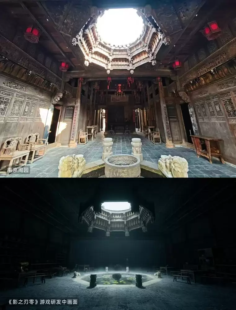 在专题研究中,《艺术学研究》将《影之刃零》的游戏场景建模与真实的文旅地标进行了并置对比。江南古镇的戏台、苏州园林的庭院天井、北京首钢园的工业遗存……这些遍布中国的实体空间,经过开发团队灵游坊(S-GAME)的艺术化处理,被巧妙地转化并融入了《影之刃零》独特的“影境世界”。