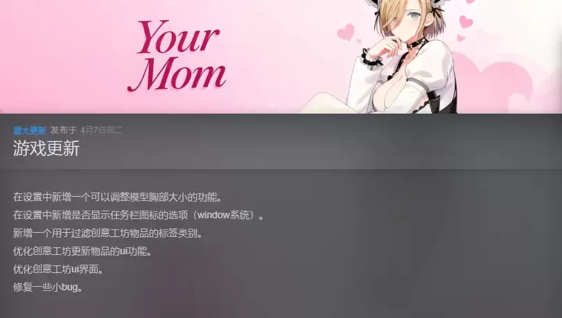 你是否还记得曾在Steam好友动态中频繁出现的“XXX正在玩《你妈》”提示?这正是那款以趣味名称引发广泛关注的桌面宠物模拟游戏。近日,其开发团队Mom Game发布了新一轮内容更新,在提升整体稳定性的基础上,引入了一项备受玩家期待的角色自定义选项——现在你可以自由调整桌宠角色的胸部尺寸,实现更个性化的外观设定。