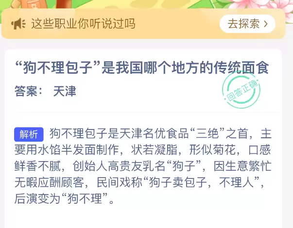 2026年4月8日,蚂蚁新村每日一题如约而至。今日的题目,围绕一道驰名中外的中华老字号美食展开——请您猜一猜,被誉为“天津三绝”之首的“狗不理包子”,究竟源自我国哪个省市的地方传统面食?