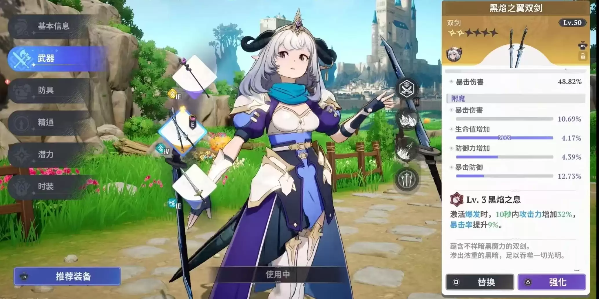 杰莉卡的独特之处在于其定位的灵活性。她如同一把“战术瑞士军刀”,具体承担何种职责,完全由所装备的武器决定。这一角色的精髓,紧密绑定于三把冰属性专属武器:双剑、细剑与长枪。三者分别对应着截然不同的战斗机制与团队作用。