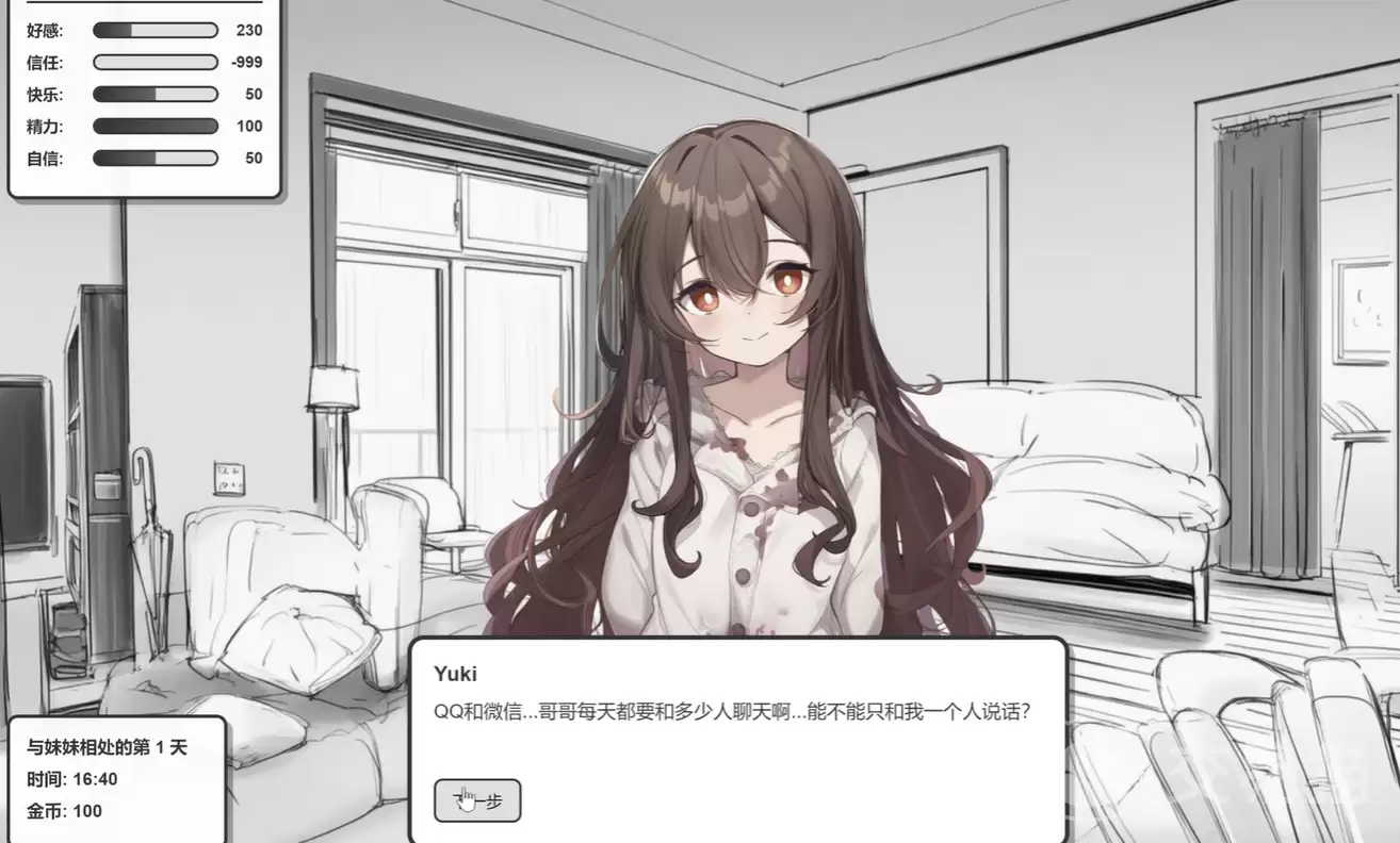 对于追求深度情感沉浸的玩家来说,常规的日常互动有时确实显得温吞了些。而《妹居物语》手游里为Yuki角色独辟的“病娇模式”,恰恰提供了一条更具戏剧张力与情感层次的特殊路径。这可不是简单的剧情分支,它更像是一个高辨识度的情感实验场,以强烈的占有欲、高度主动的干预行为,以及打破常规的跨次元交互为标志。一旦踏入这条线,Yuki便不再掩饰,她会以一种更直接、更富主观意志的方式,介入你的数字生活。