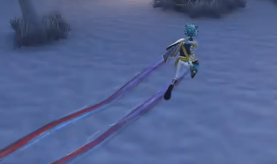 就连技能特效的细节也没有放过。以佣兵的核心道具“钢铁护腕”为例,其弹射冲刺时的光效进行了优化。回想之前的版本,冲刺轨迹主要是纯红色的光效,而优化后,在红色主调的基础上,增加了浅蓝色的动态描边。