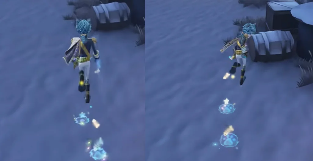 此外,脚印特效也得到了全面升级。每一步踏出,地上都会留下一个清晰可爱的浅蓝色小猫爪印,并且周围还巧妙地点缀着闪烁的星星和小鱼干图案。这个设计不仅萌趣十足,也让佣兵在牵制与转点的路径上,留下了一串独一无二的、充满个性的轨迹。