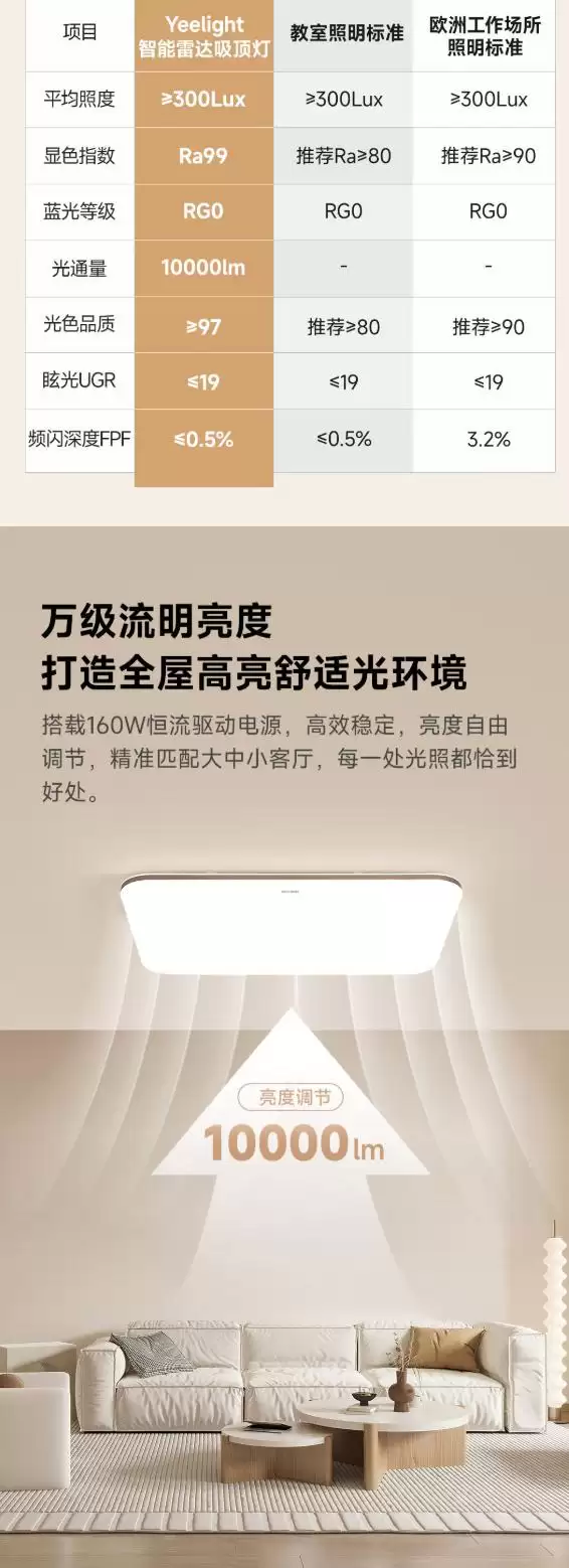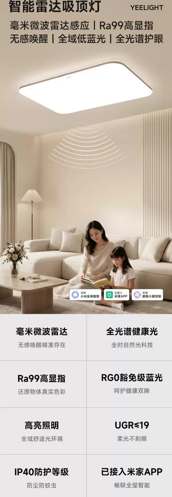 Yeelight智能雷达人在护眼吸顶灯RadarSense:无感交互与健康光感的融合