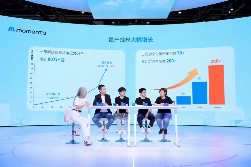 4月26日,2026北京国际车展现场,一场名为“Momenta R7,物理AI序章”的分享会,将行业目光聚焦于自动驾驶技术的新拐点。会上,Momenta正式宣布其R7强化学习世界模型实现量产首发。同时,一组最新商业化数据被公布:搭载Momenta系统的量产车辆规模已突破80万台,累计交付车型超过70款,而定点车型数量更是超过了200款。这不仅是数字的增长,更暗示着技术规模化应用的临界点正在到来。