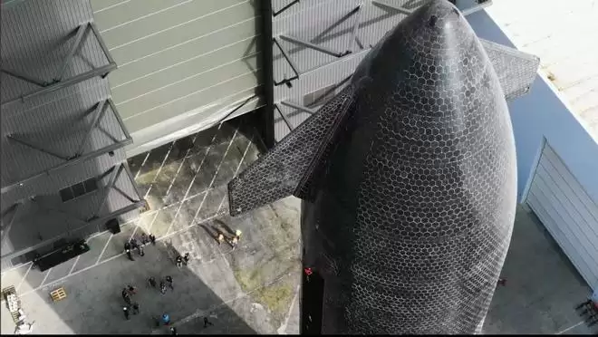 新飞船(S39):推进剂容量增加、热分级效率优化,热盾瓦片布局全新升级——覆盖延伸至襟翼背面,彻底解决以往再入烧蚀难题。镜头展示在梅西测试场(专为上层飞船打造的新测试基地)完成的低温压力测试,画面中飞船在极寒环境中纹丝不动,彰显V3热防护的可靠性。