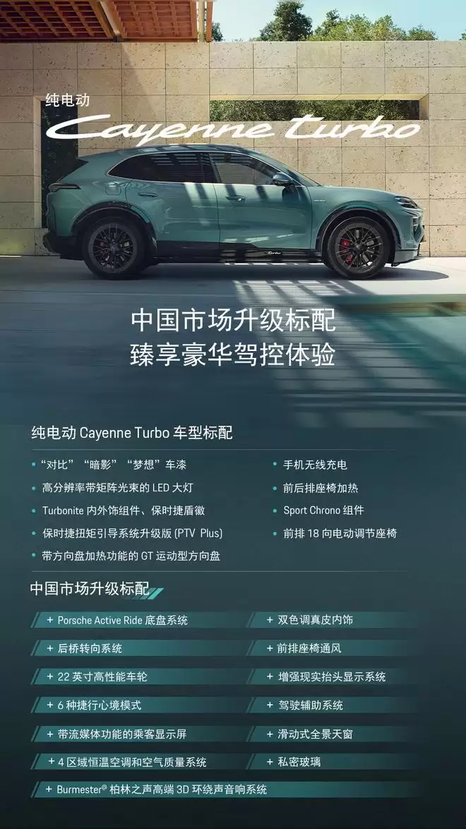 111.8万元起,保时捷纯电Cayenne Turbo国内售价公布