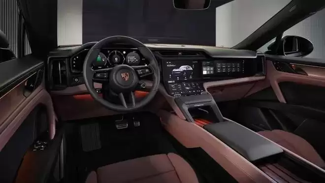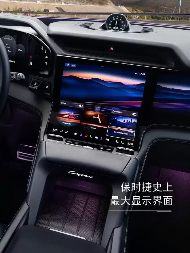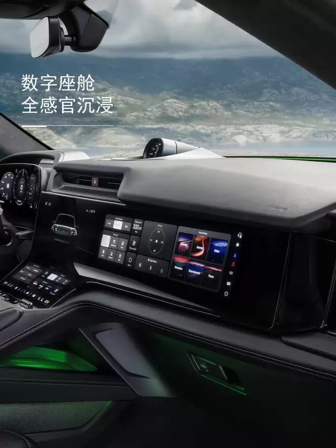 坐进车内,科技感的提升是碘伏性的。全新的立体化中控台,被12.25英寸弧形OLED中控屏、14.6英寸全液晶仪表以及14.9英寸副驾驶娱乐屏所环绕。然而,在几乎所有厂商都将实体按键一扫而光的当下,保时捷却做出了不同的选择——中控区域依然保留了大量的实体按键与旋钮。这种设计,显然是为了保障在激烈驾驶或盲操作时的便利与精准,这何尝不是一种对驾驶本质的坚持?此外,那块可选装的87英寸AR-HUD抬头显示系统,更是将未来感直接投射在了前风挡上。