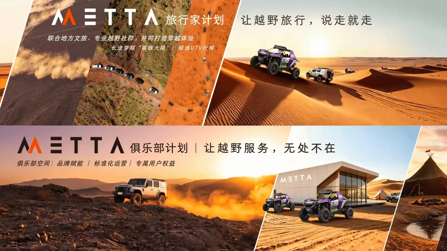 光有车还不够,关键是如何让用户“会越野”、“享越野”。为此,212越野车同步推出了“METTA旅行家”与“METTA俱乐部”两大生态项目。通过与专业文旅机构、各地社群组织的深度合作,品牌为爱好者们规划好了现成的穿越路线,并组织丰富的线下活动。这一招,实际上大大降低了越野体验的门槛——你不需要自己摸索路线、召集同伴,跟着现成的生态玩就行。乐趣有了,难度低了,参与的人自然就多了。