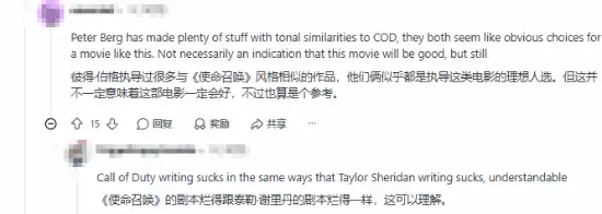 相关内容源自Esquire的独家专访报道,帖子发布在海外社群 r/Gamingcirclejerk 板块之后,短时间内收获大量点赞和讨论。不少核心玩家看到旧言论后,都直接表达自己的不满,大家普遍不看好这名导演掌舵《使命召唤》真人电影的创作前景。