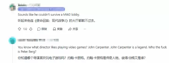 社群评论区的网友观点呈现一边倒的趋势。很多玩家会拿其他热爱游戏的知名导演做对比,大家直言John Carpenter这类影视从业者才真正理解游戏文化。
