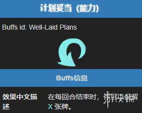 具体是怎么运作的呢?当你拥有“计划妥帖”状态后,每回合的结束阶段会触发一个关键选择:你可以从本回合剩余的手牌中,主动挑选至多等同于状态层数的卡牌。